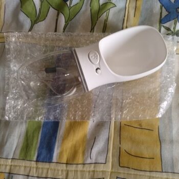 It’s a wonderful water bottle for your dog just tipping over and push a button and it fills with water and he drinks it and you throw the rest out .He gets quite a few drinks and it’s just really easy to carry round I highly recommend it~❤️