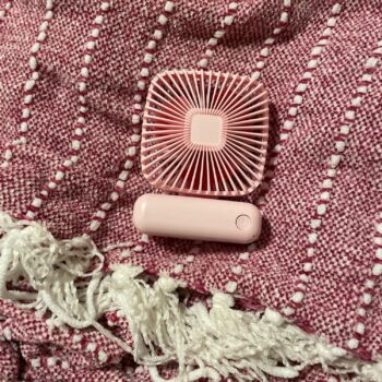 this little fan is a lifesaver during hot summer days. it's small enough to fit in my purse and rechargeable feature means no more wasting batteries