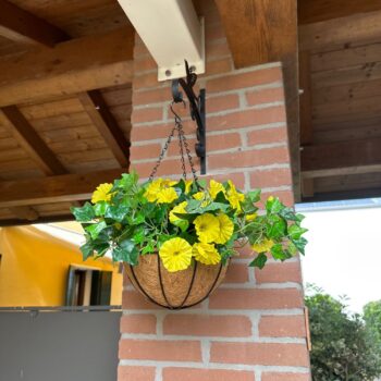 Our hanging planter features a robust iron frame with a sleek chrome finish, ensuring longevity and weather resistance. The natural coconut liner adds a rustic touch while supporting your plants comfortably. With everything you need included, setting up your new plant display is a breeze—no tools necessary! Just hang it up with the provided chains and hooks, and you’re all set to go.