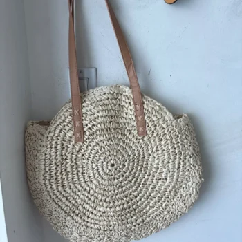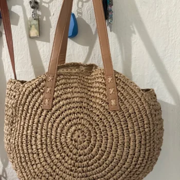 I recently bought this straw bag for my beach vacation and I'm in love! It's spacious enough to carry all my essentials yet not too bulky. The round shape is so trendy and unique, it definitely stands out from the usual beach bags. Plus, its natural material gives off such a cool vibe. Highly recommended! 🌟👜🏖️