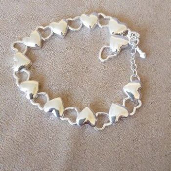 Don’t miss the opportunity to own or gift this exquisite piece of fashion jewelry. Perfect for those who appreciate the finer things in life, this Sterling Silver Heart Charm Bracelet is a must-have for any jewelry collection. Embrace elegance, embrace love, embrace your style. Add to cart now and let your style speak volumes!