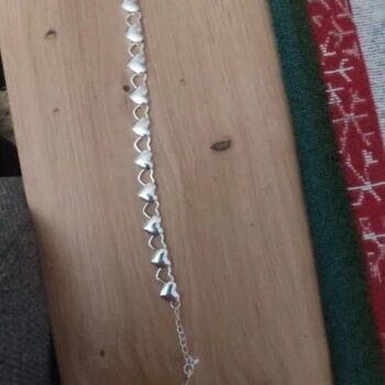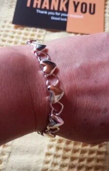 Arrived on time🤩Thanks🫂 I'm really pleased with my purchase. The bracelet caught my eye immediately, and I think I might even like it more in person than in the photos. It's crafted from silver and features adorable little hearts 😍❤️. It arrived right on schedule and was packaged securely. Overall, I'm extremely satisfied with my purchase. A big thank you!