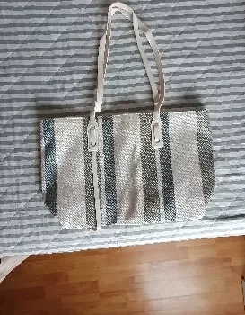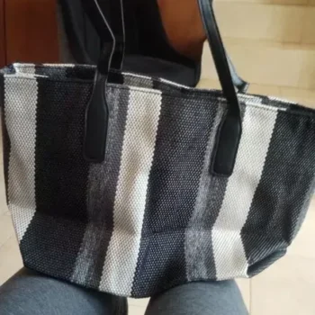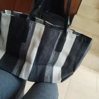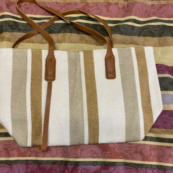 Been on the lookout for a sturdy and fashionable tote for ages and finally found one! The canvas material feels durable yet lightweight. Plus, stripes are always in style, right? ๐