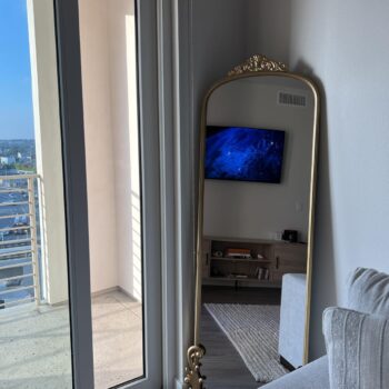 absolutely in love with this vintage mirror! it adds a unique touch of elegance to my bedroom and the full-length feature is truly appreciated. i can check out my entire outfit before heading out, which is super convenient the carved metal frame is sturdy and well-crafted - definitely worth every penny spent!this has become the point of our living room 😍 not just functional also a work of art. its arched design and intricate carvings give off an old-world charm that we adore. plus, being able to see your whole reflection is such a bonus.