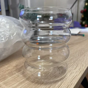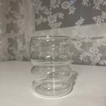 Introducing our Wave Glass Cup, a stunning piece of drinkware that elevates your drinking experience to a whole new level. Crafted from high borosilicate glass, this cup is not just a vessel for your favorite beverages, but a statement piece that adds sophistication to any setting.