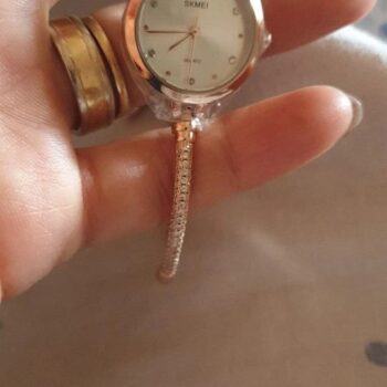 I love this watch! The size is great. Big enough to make a little statement, but not too big for casual wear. The rose gold rim and diamonds for numbers look really good. The band is sturdy but soft enough that it bends comfortably around the wrist when strapped on. This is a really nice and attractive watch, especially for the price.