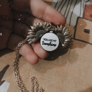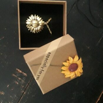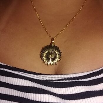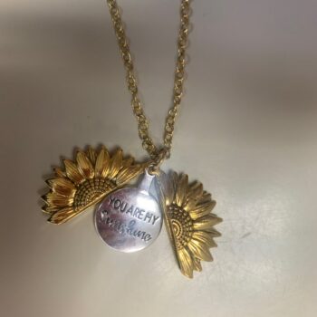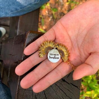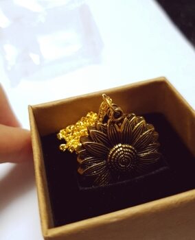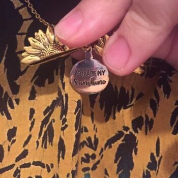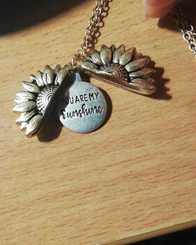 Send the message of love and appreciation with this beautifully-crafted sunflower necklace with a moving message inside.